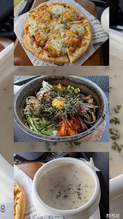 兩位朋友都叫牛肉拌飯,我則是點了披薩和濃湯。原本對這種觀光工廠的食物沒有太大的期待,品嚐之後覺得不輸給外面的餐廳,在價格上也蠻合理的。我們於是在歇腳亭裡邊吃午餐邊聊天,度過了非常悠閒的下午。吃過飯之後,我們還在園區散步,拍了許多美照,當然,來這裡買一些美容用品是必須的,來這裡我會買他們的透明精油香皂,我的朋友則會買香水,之前有位朋友說喜歡他們的玻尿酸。