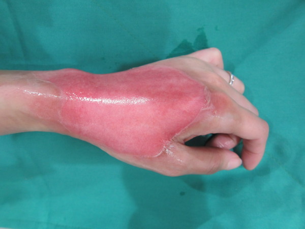 肚子好餓喔!來泡碗泡麵吧~空姐一個恍神熱水就往左手手背倒下去,一滴熱水都沒有在泡麵裡。空姐上網尋找到了我們南陽診所,來的時候已經是燙傷第四天了,空姐說他隨便找了一間醫院包紮,但是實在痛到受不了了,所以找上了我們。