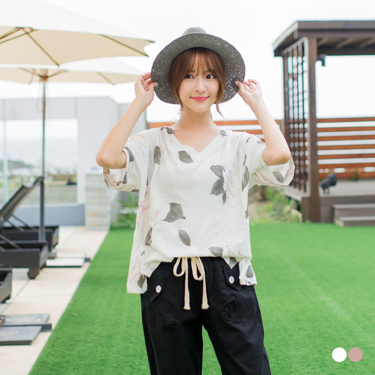 較寬鬆的版型舒適自在,玫瑰印花更顯溫柔知性信用瑕疵貸款~