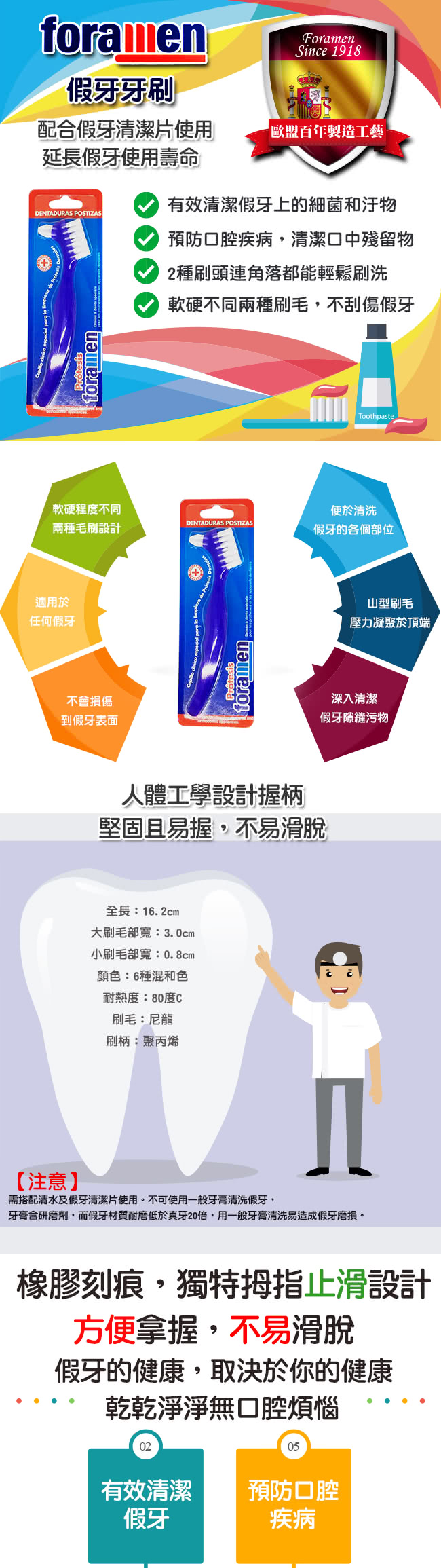 【西班牙Foramen】假牙牙刷,口腔清潔不可缺少,刷牙少不了它。