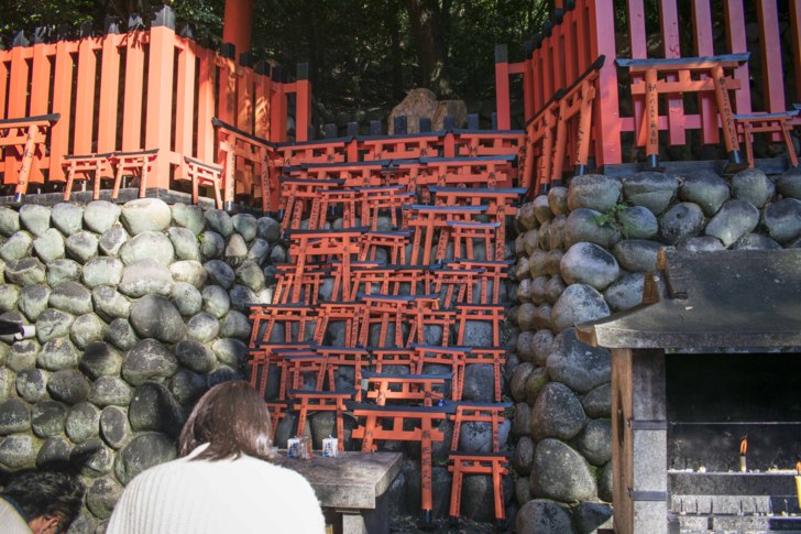 稻荷山不光是有千本鳥居,除了建有多個神社之外,山上到處都供有紅色的小鳥居,也設有多個可以休息的地方,山中的綠加上鳥居的紅,繪出一幅日式的風景畫,還滿值得走一圈的,但是真的還滿累的,必須考量一下時間跟體力。
