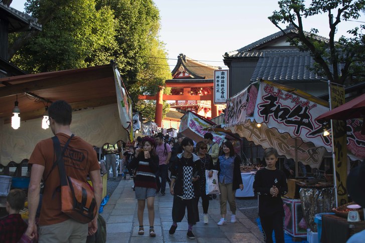 伏見稻荷大社不遠處就有屋臺可以逛