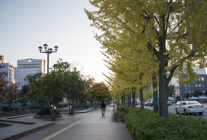 沿著河川走,旁邊的銀杏已經轉黃
