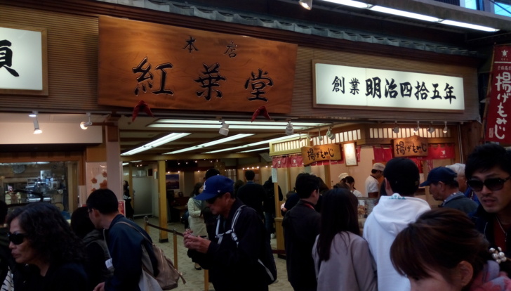 宮島知名的土產--紅葉堂的炸紅葉饅頭,可以現場直接單買來吃。