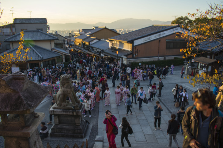 人真的爆多的,不光是外國人,日本人也很愛來這裡,也是日本學校修學旅行的必去景點,所以以高中生生活為背景的動畫中也經常會有到清水寺觀光的橋段。