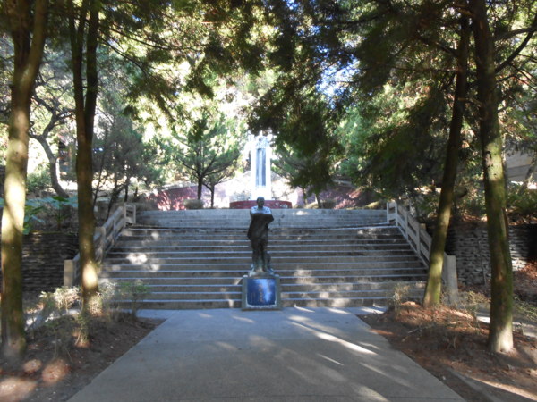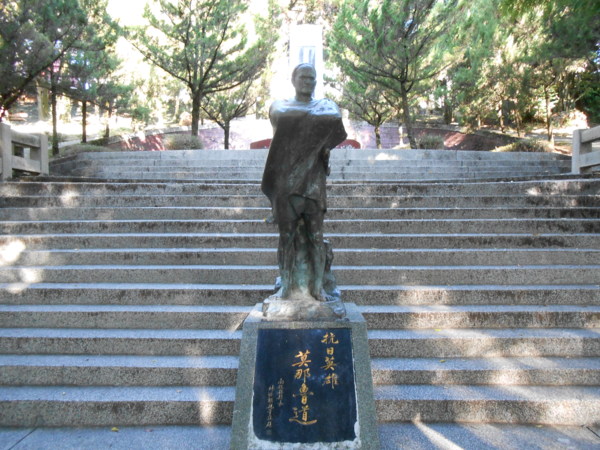 今天早上5點半就從台中騎機車出發,經過太平和國姓的136縣道,在埔里稍作休息後,繼續往霧社奔騎馳,約於早上8點抵達霧社的莫那魯道抗日紀念碑。紀念公園裡非常的安靜,當時只有我一個人在公園裡,而莫那魯道的人像就在進入公園之後的正前方,而人像正後方就是莫那魯道抗日紀念碑。