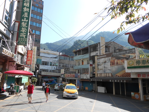 經過廬山吊橋後,會抵達盧山另一邊的街道,此時接近9點,但街道上幾乎沒有人,帶著幾許的冷清,「天下第一泉」廬山溫泉還未從之前的風災中恢復過來,店家也多是人去樓空。