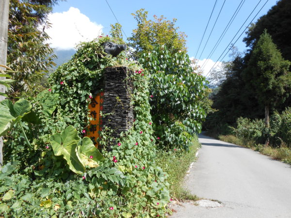 不遠的地方可以看到被野草埋起來的「合作部落」路碑,上面應該是山豬頭。這種情景,不禁讓人覺得真的有進入「秘境」的感覺啊!