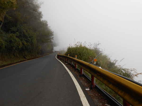從翠峰到昆陽德路段,全部都被大霧所壟罩,騎車請記得開燈,有些地方霧很濃,只有10公尺的視野,越往上騎,機車也越難提升速度,不過這裡不管是騎機車還開車,車速也都會減慢,所以其實還好。