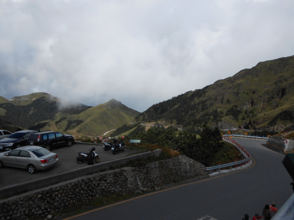 武嶺的看台上,有非常多人在這裡排隊拍照,因為只有一個人,不好拍照,所以就沒拍武嶺的立牌了,從武嶺看台上往台14甲拍過去,這裡也有不少騎機車的騎士。