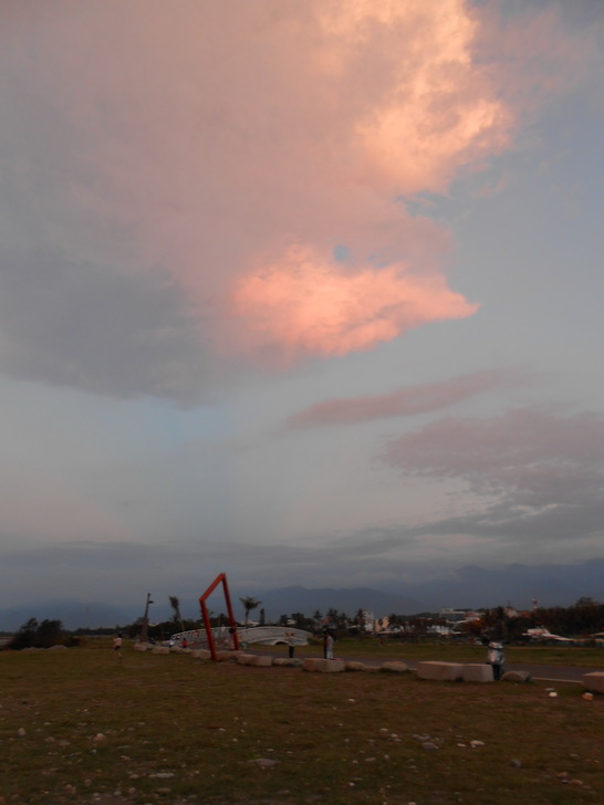 台東海濱公園。原本想要來看日出,但是天空被雲層籠罩,只能看的到淡淡的橘紅彩雲。