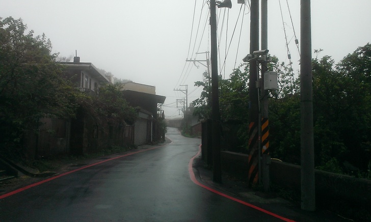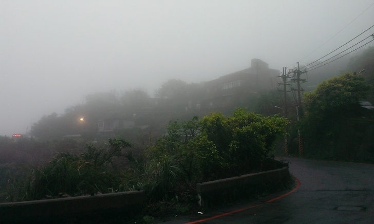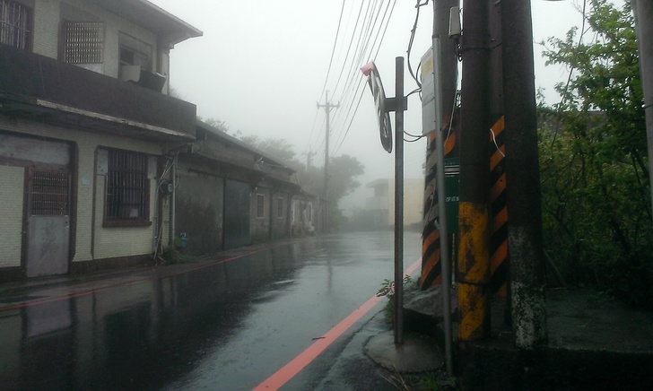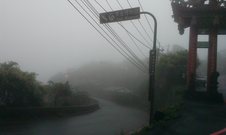 金瓜石街景,此時颱風接近台灣東北岸,所以這邊正在下大雨。