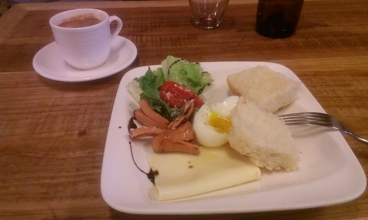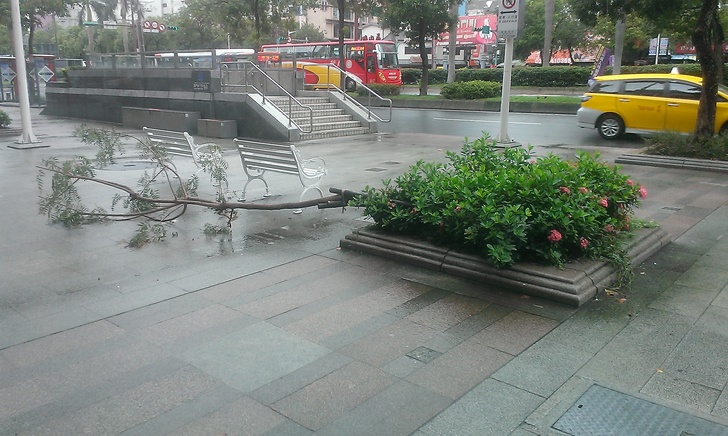 今天是環島的最後一天。前一天金瓜石還只有微微細雨,但是到了今天早上起床時,屋外下著暴雨,看樣子颱風應該就在東北角外海了。寬宿除了住一晚外,還有包一餐西式早餐,個人因為平常很少吃西式早餐,所以覺得滿新奇的,也不錯吃。在吃完早餐之後,準備好背包,便到外面的公車牌等候公車,外面依舊是狂風暴雨,幸好公車牌旁有一棟房子的屋簷可以避雨等車,不然真的就淋濕了。