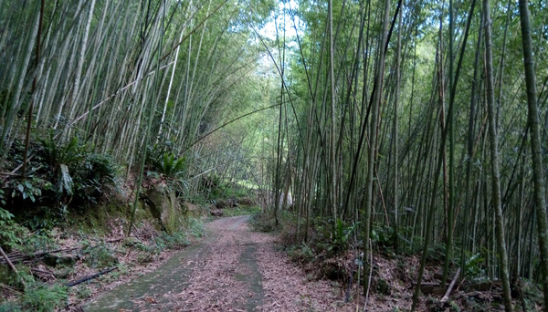 如果從綠色告示牌繼續沿著水泥路騎下去,就會看到景色變成竹林,那就是走錯了。