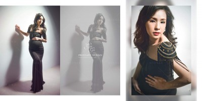 神祕的黑紗、氣勢的表情流露,讓我們來一起欣賞孕媽咪的酷炫造型寫真吧!