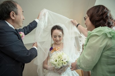 §父母親幫寶貝女兒蓋上頭紗,這也是祝福的儀式之一