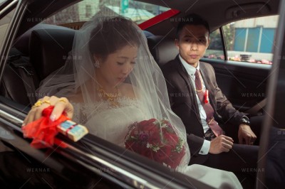 15.新娘子下車:新娘下車前,會有一個小朋友端茶盤,茶盤上面會放橘子(或蘋果)來請新娘子下車,