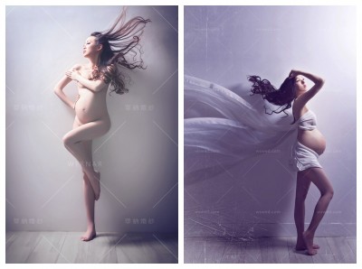 近來也有很多孕媽咪選擇東方風情的攝影風格,珠翠頭冠顯出孕媽咪的不凡氣勢,經由攝影師的側拍,讓孕媽咪的身型線條更加突出。