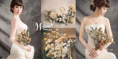 低盤髮造型以乾燥花匯集的髮飾點綴,非常適合喜歡清新淡雅風格的美麗新娘!