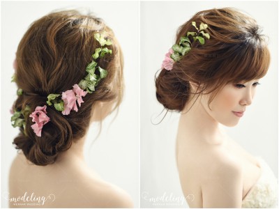 除了花冠本身的設計和花卉色彩的配搭外,新娘的髮型本身更是不可忽視的關鍵,別出心裁的髮型設計,更能呈現出花冠清新的浪漫特質。