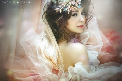 除了花冠本身的設計和花卉色彩的配搭外,髮型的本身更是不可忽視的關鍵,別出心裁的髮型設計,更能呈現花冠夢幻唯美的特質。