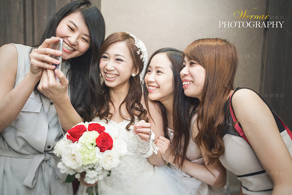 所以,小編強烈建議新娘們可以帶著貼心的伴娘,姊妹們一起高高興興的去選婚紗禮服。當試衣間的幕布拉開,看著自己最親愛的姐妹突然間有了小女人的嬌羞與幸福,那份感動無可比擬!
