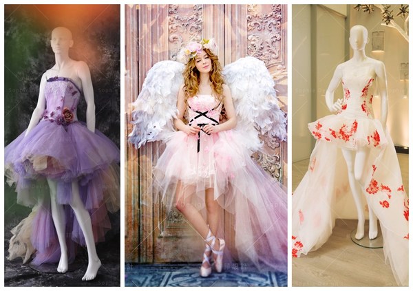 」了,導致新娘穿上華麗的蓬蓬裙婚紗時,嬌小身材就會彷彿被裙襬淹沒,或是裙擺過長的禮服,也讓新娘即使穿上高跟鞋,看起來也彷彿偷穿媽媽的衣服(淚奔)