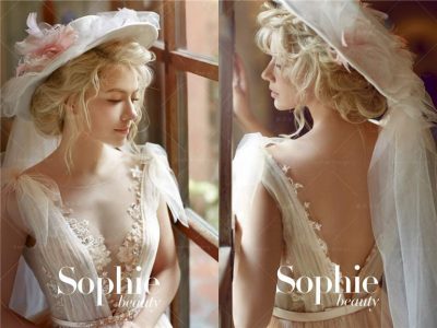 婚紗帽不但為新娘的整體造型增添不少夢幻的美感,還具備了傳統頭紗的裝飾作用,搭配美背款禮服,輕柔的頭紗拖曳難以言喻的浪漫感。