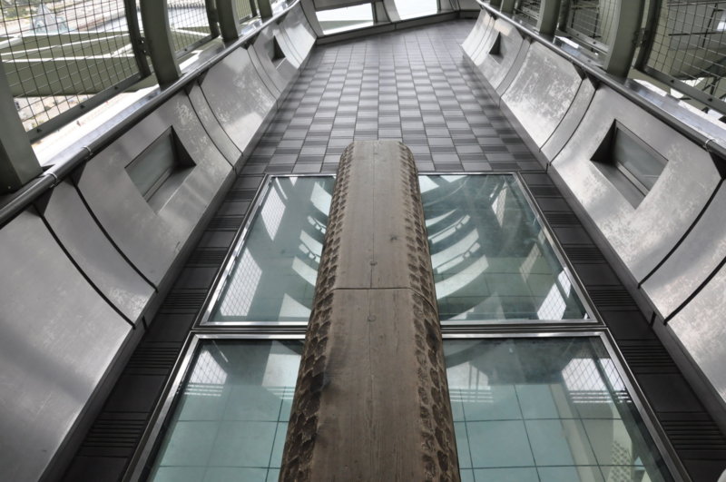 ,從玻璃窗戶往下俯瞰,鋼樑粗壯鉅大,氣勢壯觀。