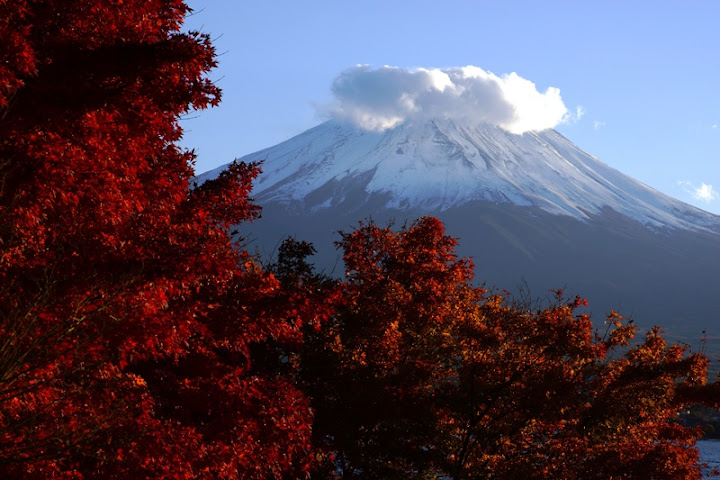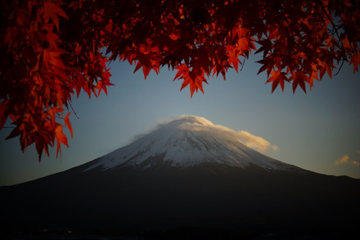 那年第一次見富士山,還是在楓葉通紅的秋季,如此美麗的景色,恨不得將她盡收鏡下。