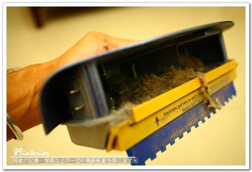很怕灰塵的我們只好平常選擇緊閉門窗,然後利用我們家那部狠角色~~TOSHIBA-VC-SP550具有550w功力的超強吸塵器,然後用一隻我們油漆師傅送的小油漆刷補助, 蹲在地板上一邊掃一邊吸,雖然最後地板會超級乾淨,不過往往卻換來一身腰酸背痛。