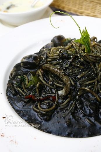 裡頭除了蛤蜊及墨魚之外.整個黑醬的墨魚汁調味之後非常爽口的一道麵食