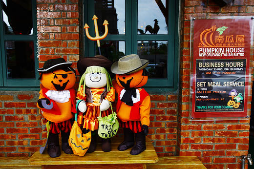 這讓我想到即將到來的西洋萬聖節.看到門口整個南瓜造型的各式玩偶.於是我們就選擇去南瓜屋用餐感受一下萬聖節的氣氛