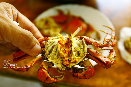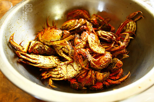 除了蒸及煮的方式之外.另外以生薑及辣椒佐料.然後利用小火燜煮的方式.這種吃法就如同胡椒蝦一樣.外頭麻辣裡頭的肉質鮮甜.又是另一種品嚐大閘蟹的最好吃法.由於口感十分熗辣.我們管它叫做好吃的"熗蟹".趁著秋末品嚐大閘蟹的好季節.你也不彷嚐嚐這樣的口感喔~~