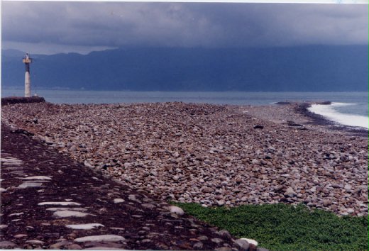 當我漫步在這條龜卵步道時,突然發現每一顆石頭都朝著我露出乞求的眼神。我只好停下腳步,蹲下來聆聽他們傾訴──我們兄弟們可是在那礫石灘上翻跟斗翻滾了幾百年幾千年,沒想到會被人用水泥困在路上,每天仰著臉曬太陽,或是弓著背駄著遊客們的腳印。