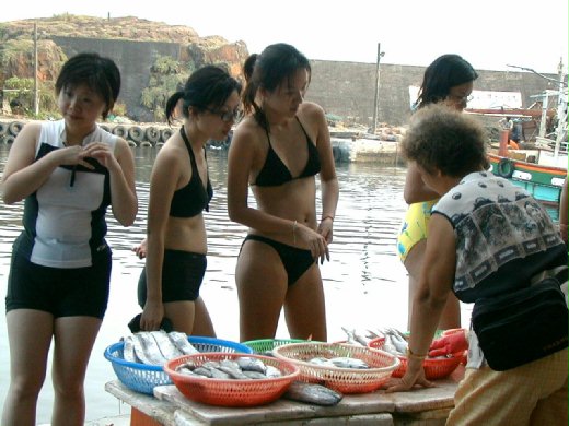 第一次看到港口魚市場裡有比基尼女郎ㄟ