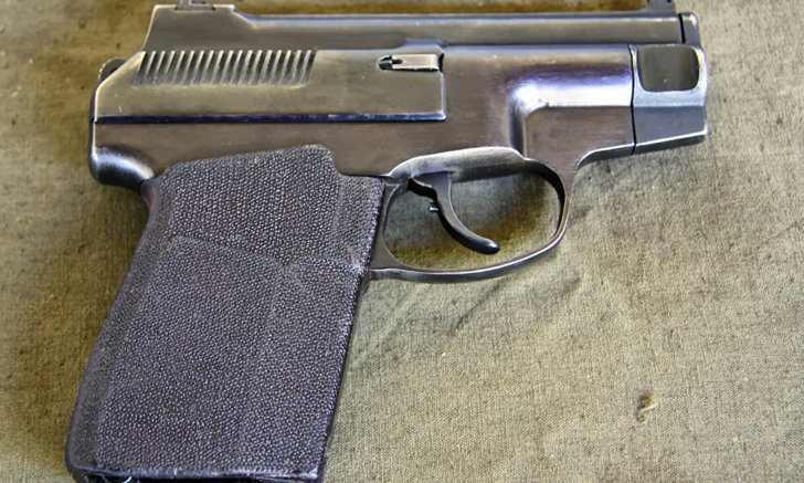 1983年,蘇聯特種部隊專門列裝了自動裝彈手槍。它確保最遠50米的無噪音無火焰射擊。在此情況下,這款自動裝彈手槍避免了沈重的消音器,具有非常緊湊的外廓尺寸,僅170毫米。這款手槍的主要特點是專門為它量身定做的7.62х41.5子彈,具有非常有意思的作用機制。火藥裝置和卡盤內的子彈之間安裝有專門的活塞。在射擊時火藥氣卡住彈殼口,擊打把子彈從槍管內推出的活塞。這樣,火藥氣就留在彈殼內,幾乎完全消除了射擊噪音。