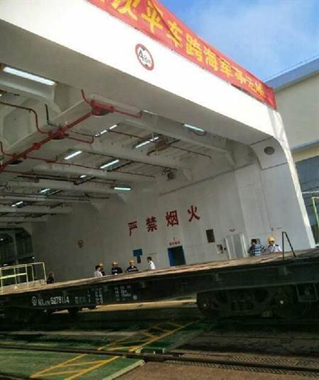 據中國大陸央視報導,11月17日中共軍委後勤支援部運輸投送局首次利用「渡輪裝火車貨列」的方式,橫渡跨廣東省雷州半島和海南省海南島的瓊州海峽,所耗時間比原本裝備需先由軍運列車運到碼頭,裝備自火車下卸後再裝載上渡輪的方式可縮短將近十個小時。