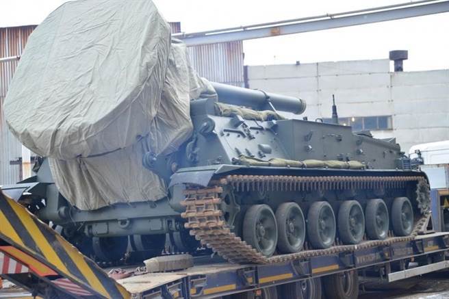 烏拉爾運輸與機械工業設計局在11月交付了一批經過現代化升級的SM.240「鬱金香樹」式240公釐自走迫擊砲,是世界上口徑最大的迫擊砲,並可發射核子砲彈。(圖/JSC Uraltransmash)