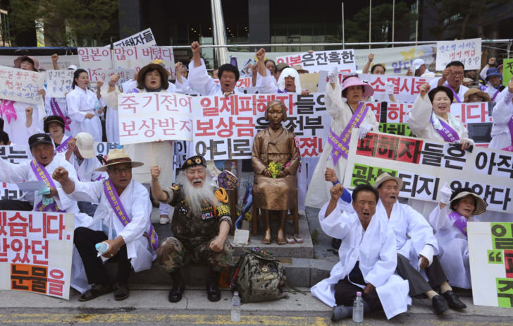 從日本殖民統治下解放紀念日首爾日本使館前的集會。