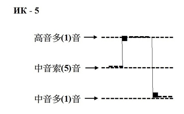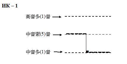 ИК-2 (語調調型2) 的示意圖:「調心」的發音,同國語注音符號第四聲讀法。