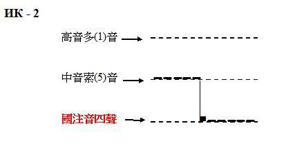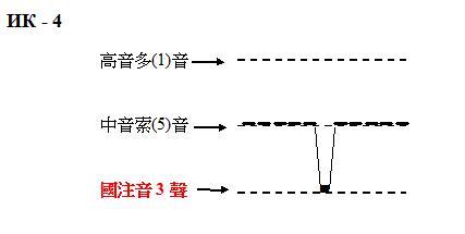 ИК-4 (語調調型4) 的示意圖:--- 同國語注音符號第三聲(全音)