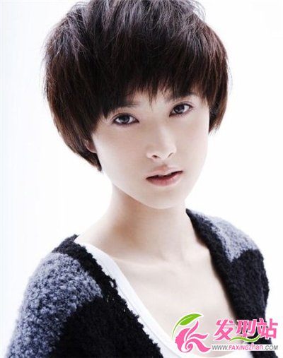 相比服帖顺滑的短发来说,这款稍显凌乱的蓬松短发则更有味道。个性的剪裁让利落的短发呈现出稍有参差的线条,长长的刘海与脸颊两侧的头发强调出女生好看的瓜子脸,表达出女生帅气可爱的一面。
