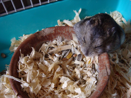 (照片中的"火種"很享受的把頭掛在飼料碗的邊緣打盹!)