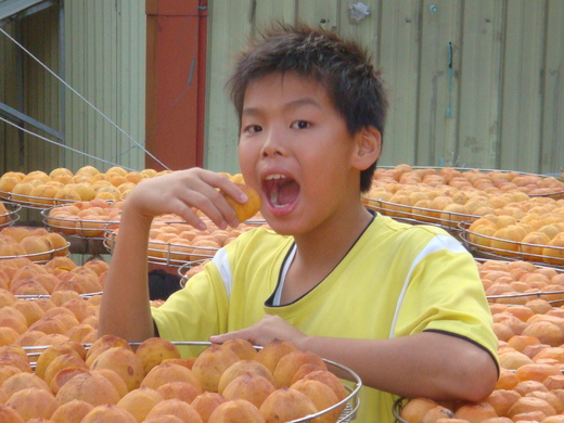 柿餅model,當然是眾人拍攝的焦點,我家的小少爺,不落人後的當起了我的摩特兒,擺個pose,要我幫他拍照.