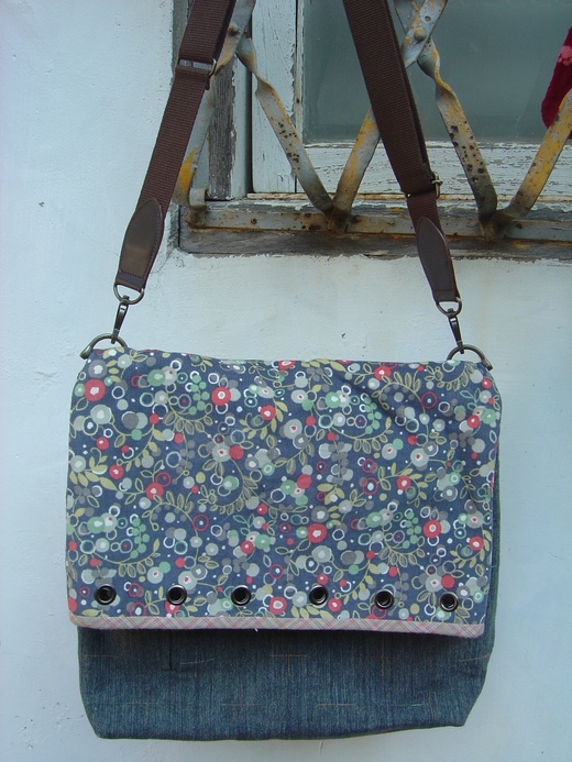 這雖然是簡單的側背包,但還是要拼接一下,來跳脫它原本的風格,又加上了雞眼扣之後,作品本身變得更活潑了,也感覺也比較年輕.