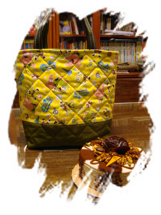 海綿寶寶的餐袋加上生日蛋糕,這是小孩的生日嗎?