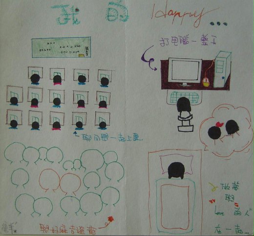 與同學一起上課、與麻吉一起逛街、聽音樂、打電腦、做好夢.......