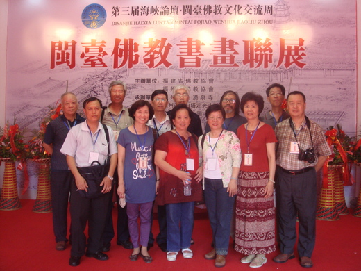 到達福州,由此次海峽論壇專門負責接待之柯小妹接車,再經輾轉乘坐遊覽車至福州大飯店,時間已屆下午2點多了,乍到素有火爐之稱的福州,顯得有些悶熱,中午因為在車上沒有用中餐所以大家都飢腸轆轆,無奈飯店業已過中午用餐時間,經過小柯聯繫協調,飯店忙著各煮一碗什醬麵讓大家裹腹後,大夥兒才休息以稍釋舟車勞頓,下午自由活動一行人到所住飯店于山附近閒逛,順便再到「福州東方書畫社」購買書畫用品,各取所需,所購物品包括印泥、國畫用品、宣紙及書畫冊等,在選購書畫字貼專輯其中,洪明燦理事長特地介紹了陸維釗與沈曾植等二位大陸書法家的專輯讓我認識,並讚揚他們書法的獨特與成就,本人因有許多字貼、書法專輯等尚待消化,所以只好先行記下來以後再買,與我也算有姻親關係的他,就個人學習書法的歷程,得到他的許多指點,獲益非淺,旅遊途中亦垂詢太太的身體狀況,並鼓勵有機會偕同出外走走,讓心情開朗,確實銘感於心。到晚間用餐時間大家才尋原路返回飯店,回飯店途中與孫國粹 先生在另一家宣紙店駐足,詢問紙張價位後感覺有比較便宜,兩人各挑選買了些宣紙才趕回飯店用晚餐。