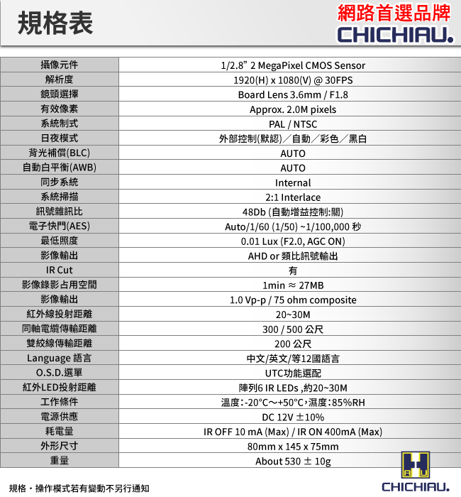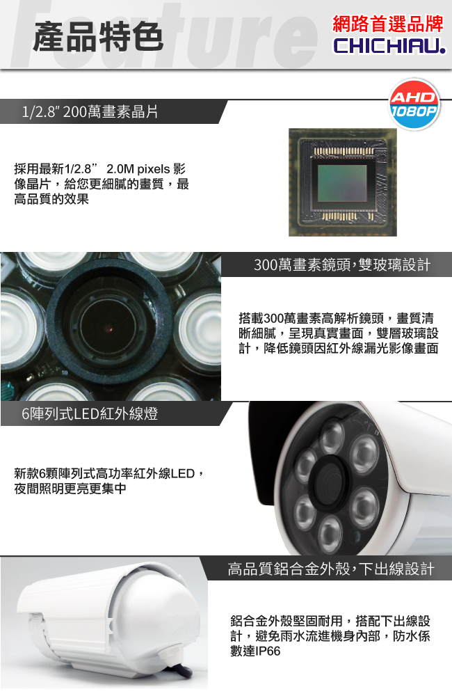 【CHICHIAU】AHD 1080P 200萬畫素2000TVL(類比2000條解析度)雙模切換6陣列燈監視器攝影機 討論,推薦,開箱,CP值,熱賣,團購,便宜,優惠,介紹,排行,精選,特價,周年慶,體驗,限時